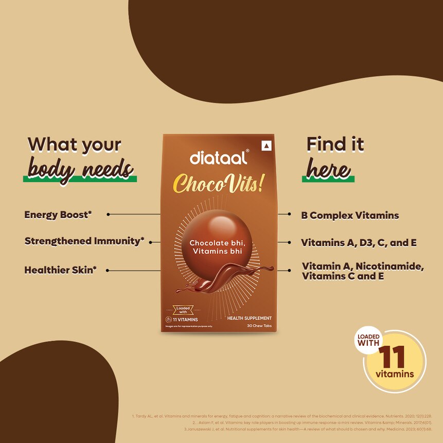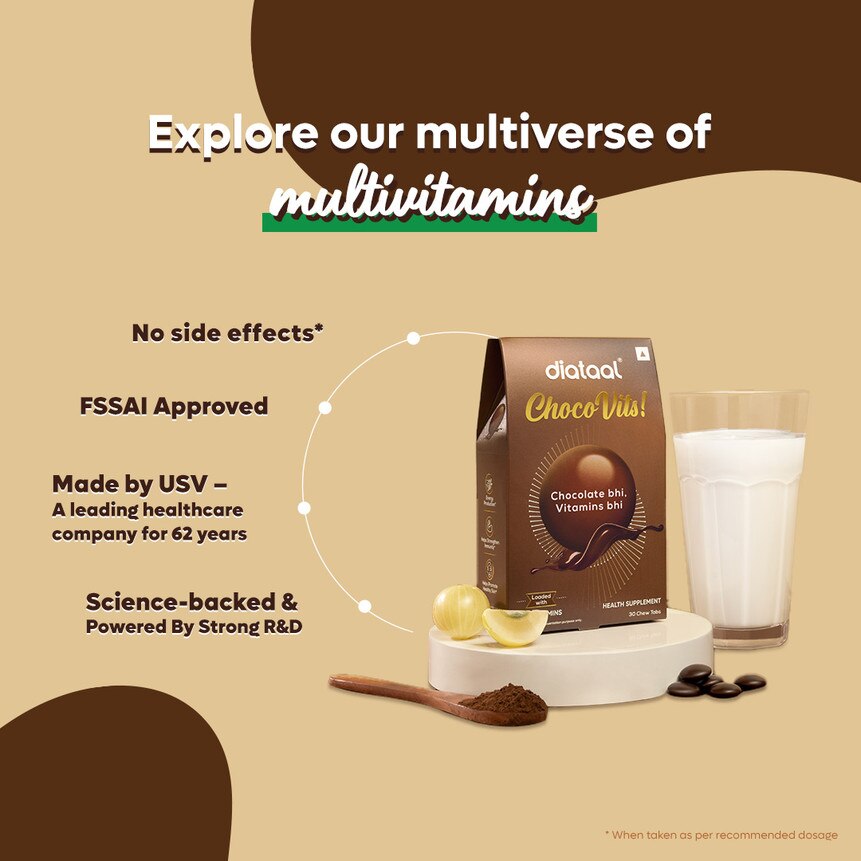 Diataal Chocovits is a good product, blend of chocolate and multivitamins. Its not that sweet as a chocolate but then a good product if you have a sweet tooth